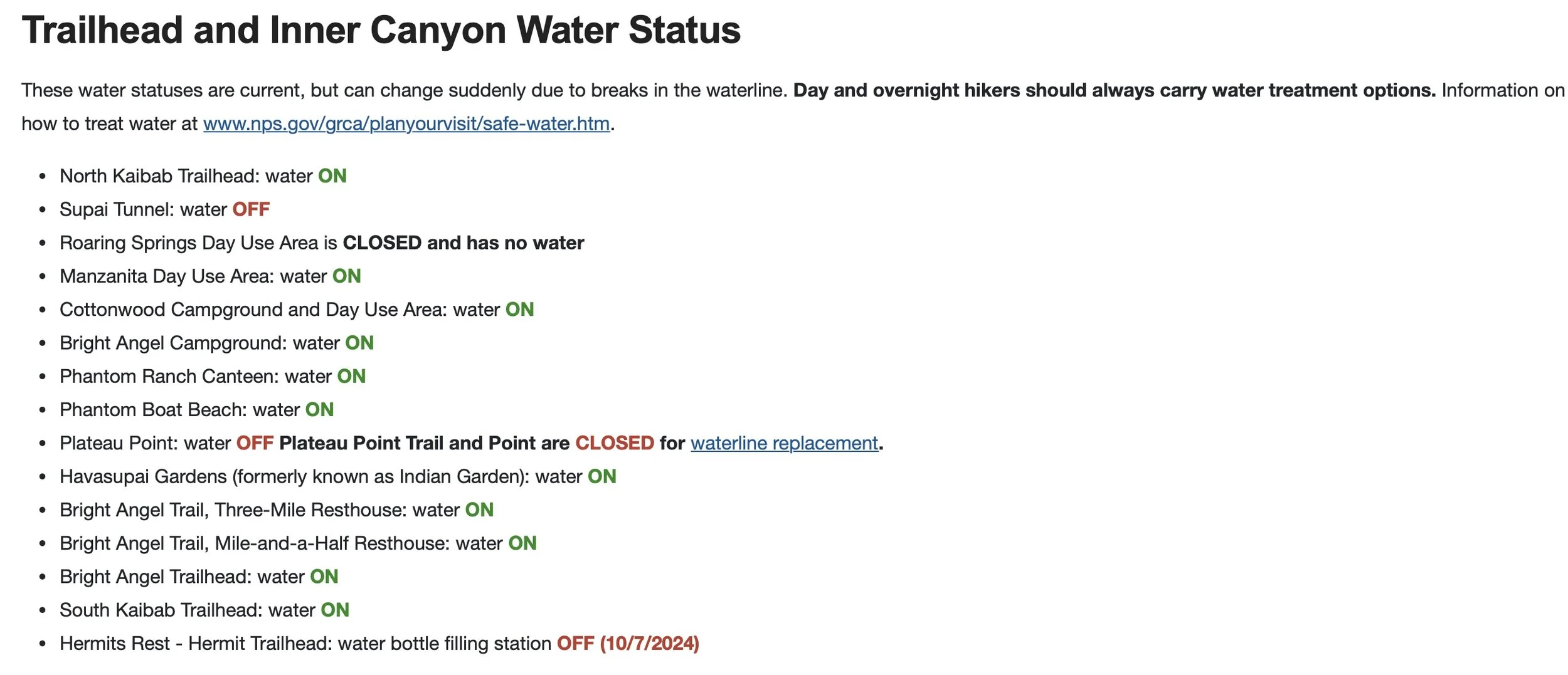 Water Status: https://www.nps.gov/grca/planyourvisit/key-messages.htm